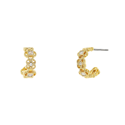 Brinco mini argola trabalhada Morana com zircônias. Banho Dourado.