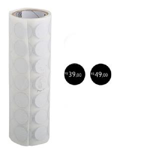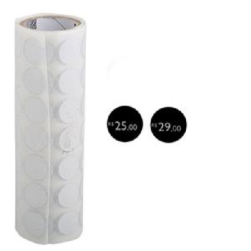 ADESIVO EM COUCHÊ BRANCO,4CM DE DIÂNMETRO,ROLO C/1000 UNIDADES